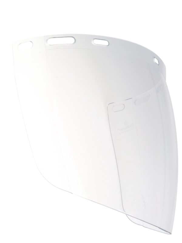 Visière de protection forme sphérique en polycarbonate incolore.