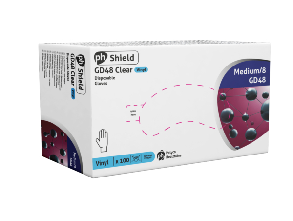 - Boîte distributrice de 100 gants vinyle transparent, légèrement poudré pour faciliter son enfilage