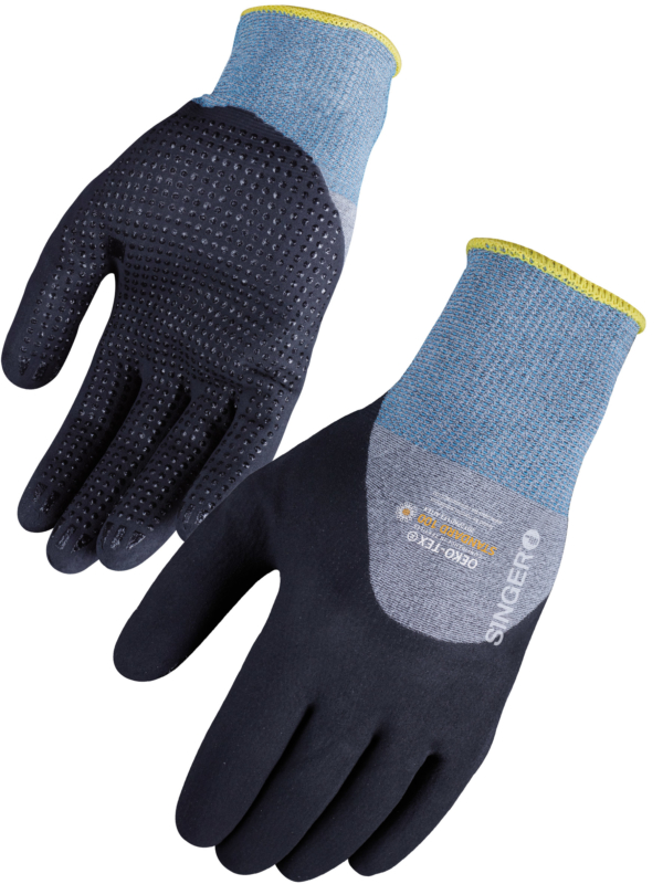 - Enduction nitrile mousse sur la paume (+ picots) améliore la protection et apporte également une très bonne prise en main en milieu humide en évacuant l’excès de fluides sur la surface.