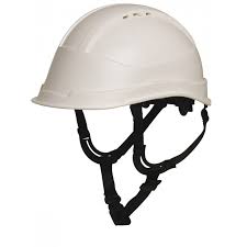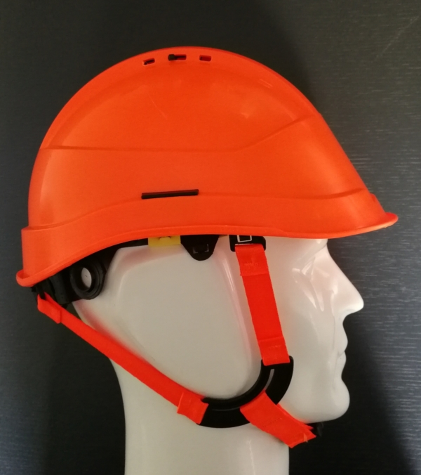 - Calotte moulée sous pression en ABS et d’un harnais comportant une coiffe textile à 4 points de fixation + bandeau de tour de tête en polyéthylène basse densité avec serre-nuque à crémaillère autobloquante.