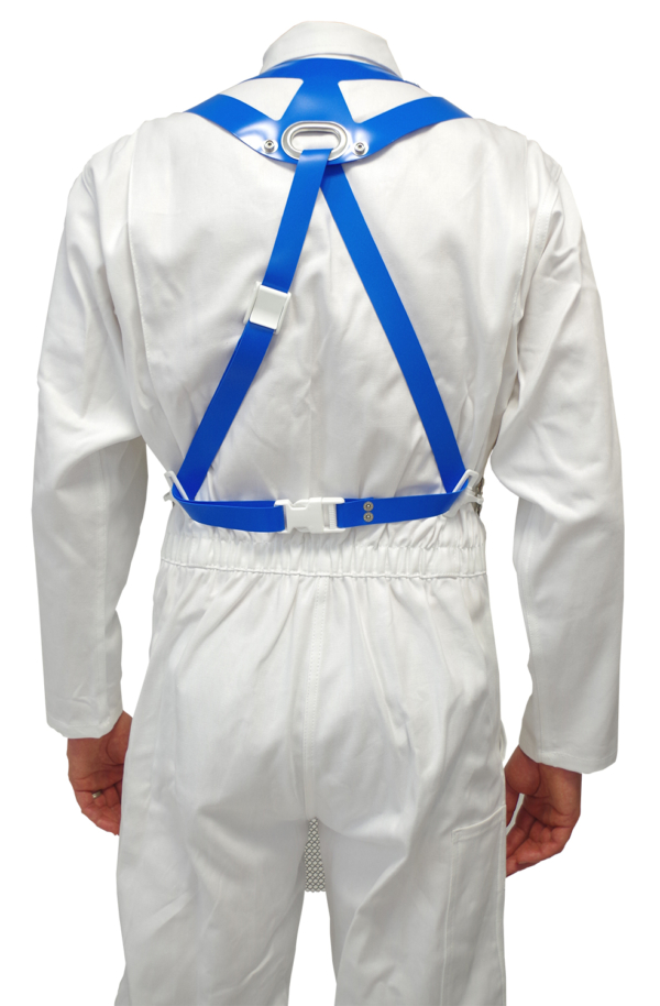 - La partie haute du tablier est équipée de quatre points de fixation – double platine – qui permettent à l’opérateur d’ajuster le tablier selon sa morphologie.