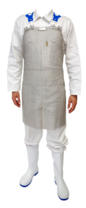 - Équipé de 2×3 pressions permettant de fixer un gant en cotte de mailles avec manchette épaule (de marque MANULATEX).
